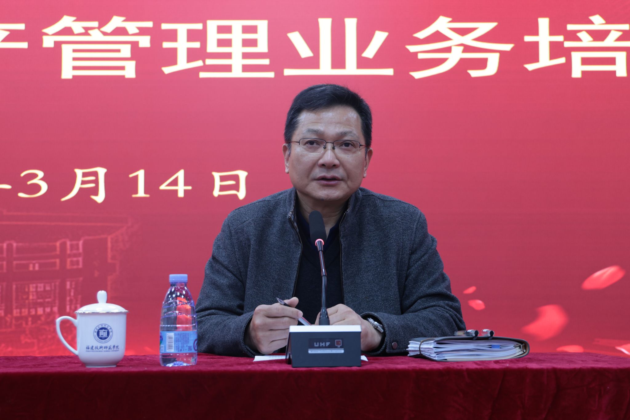 为进一步提升我校国有资产管理的规范化水平,确保国有资产安全完整与保值增值,加强学校资产管理队伍建设,3月14日上午,我校在科学楼金泰学术报告厅组织开展国有资产管理业务培训。校党委副书记林海峰、各二级单位分管资产工作负责人和资产管理员等参加了培训。